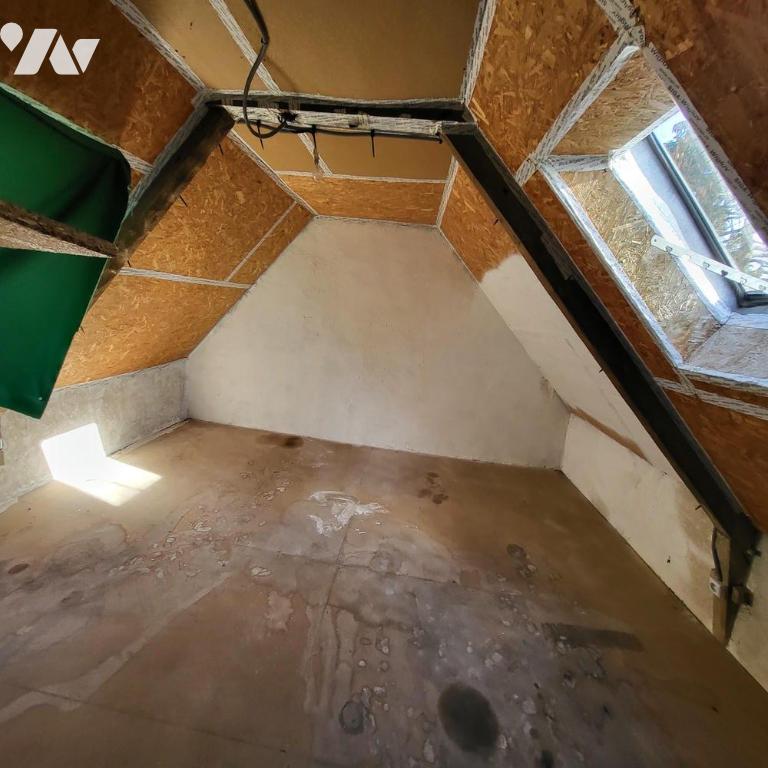 - Au rez-de-chaussée : pièce de vie, buanderie, salle de bains, débarras et garage,